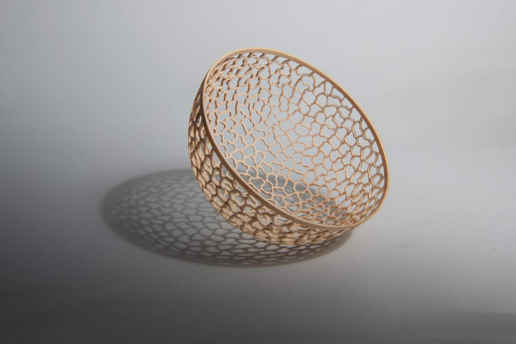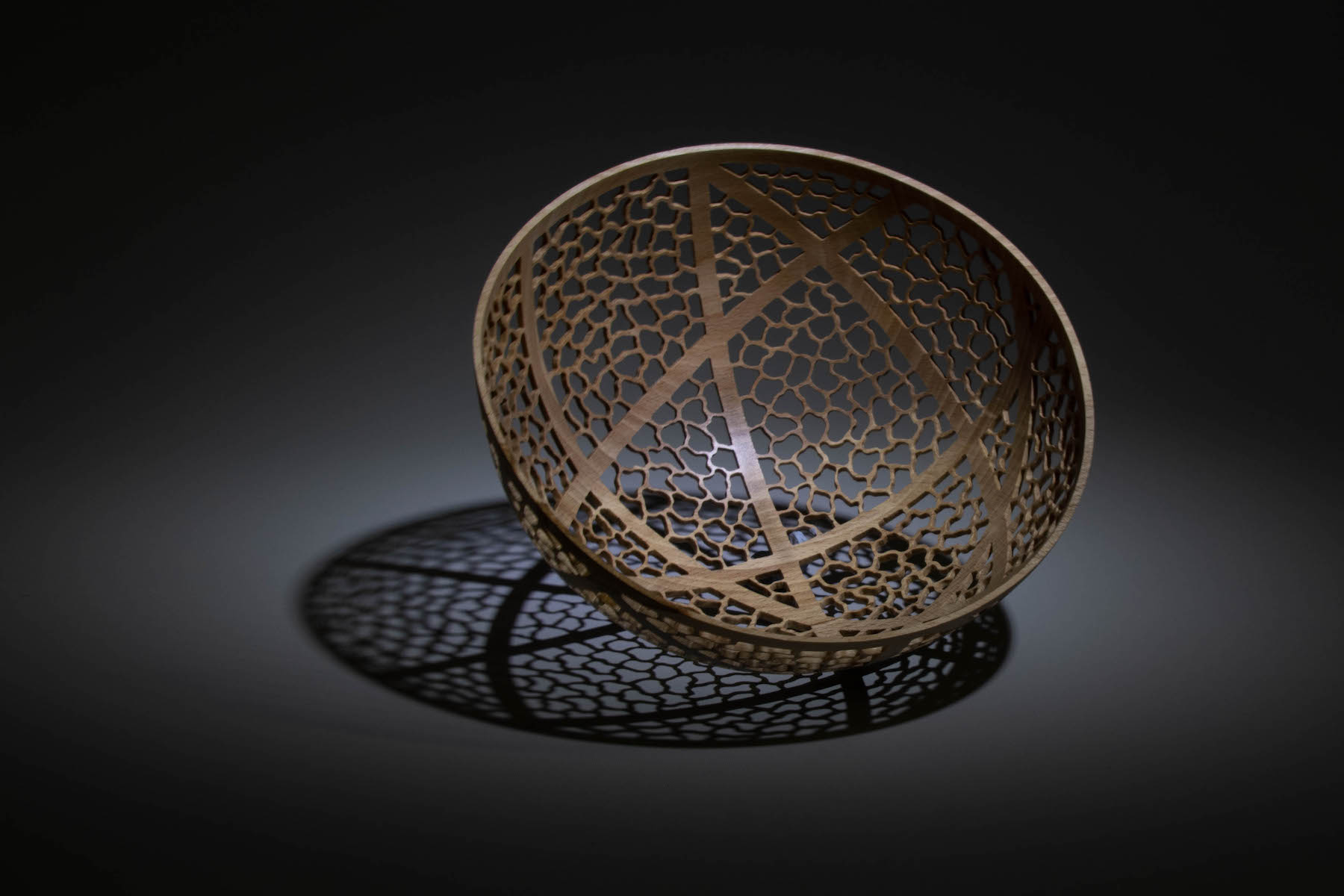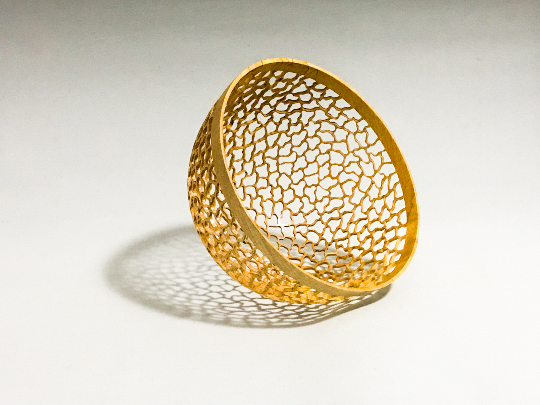 Made from English sycamore turned to 1.5mm thin and pierced. Measuring 170mm (6 3/4") wide and 85mm (3 3/8") high. Finished with acrylic satin lacq...