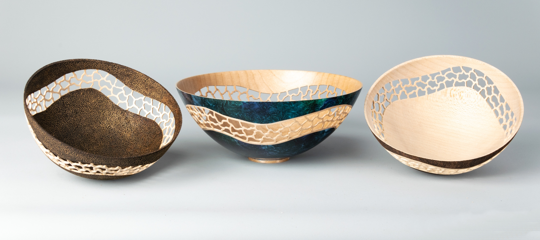 A trio of wave bowls made from English sycamore.