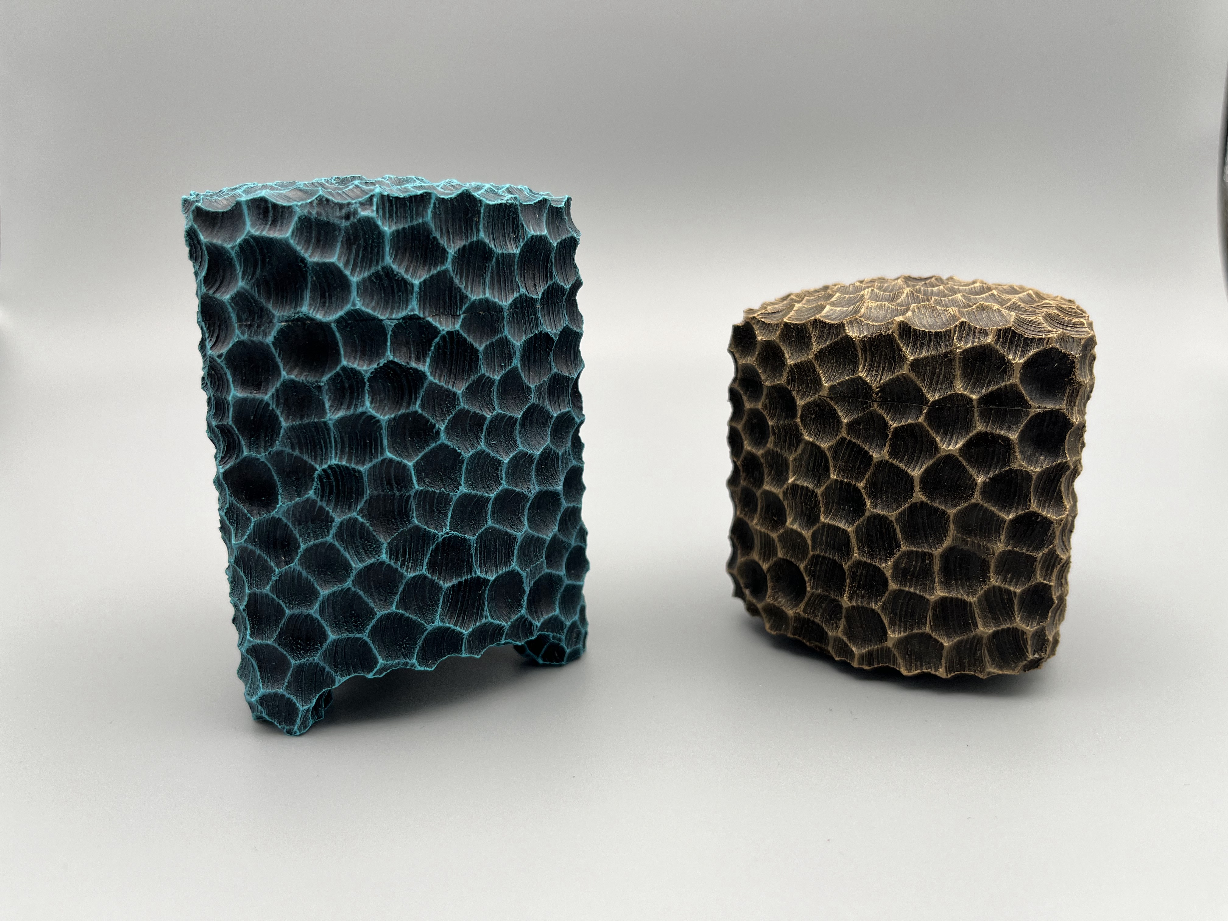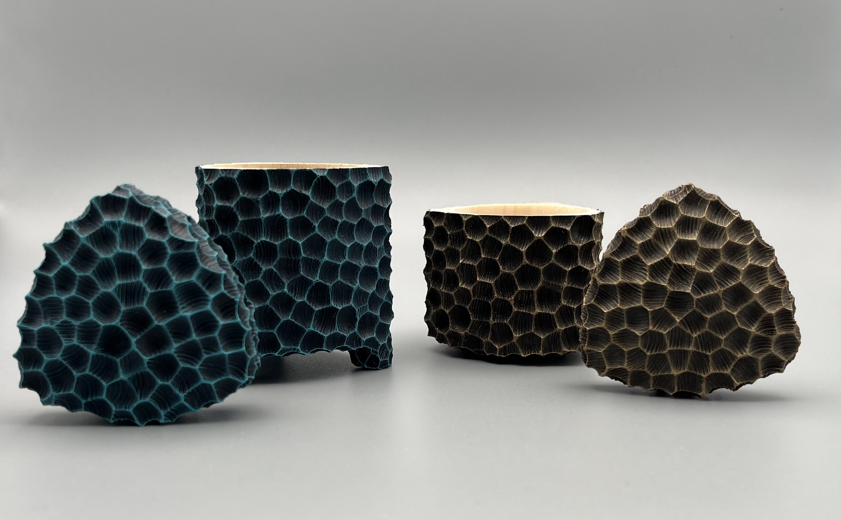 A Both made from English sycamore. Textured and painted using acrylic paints.