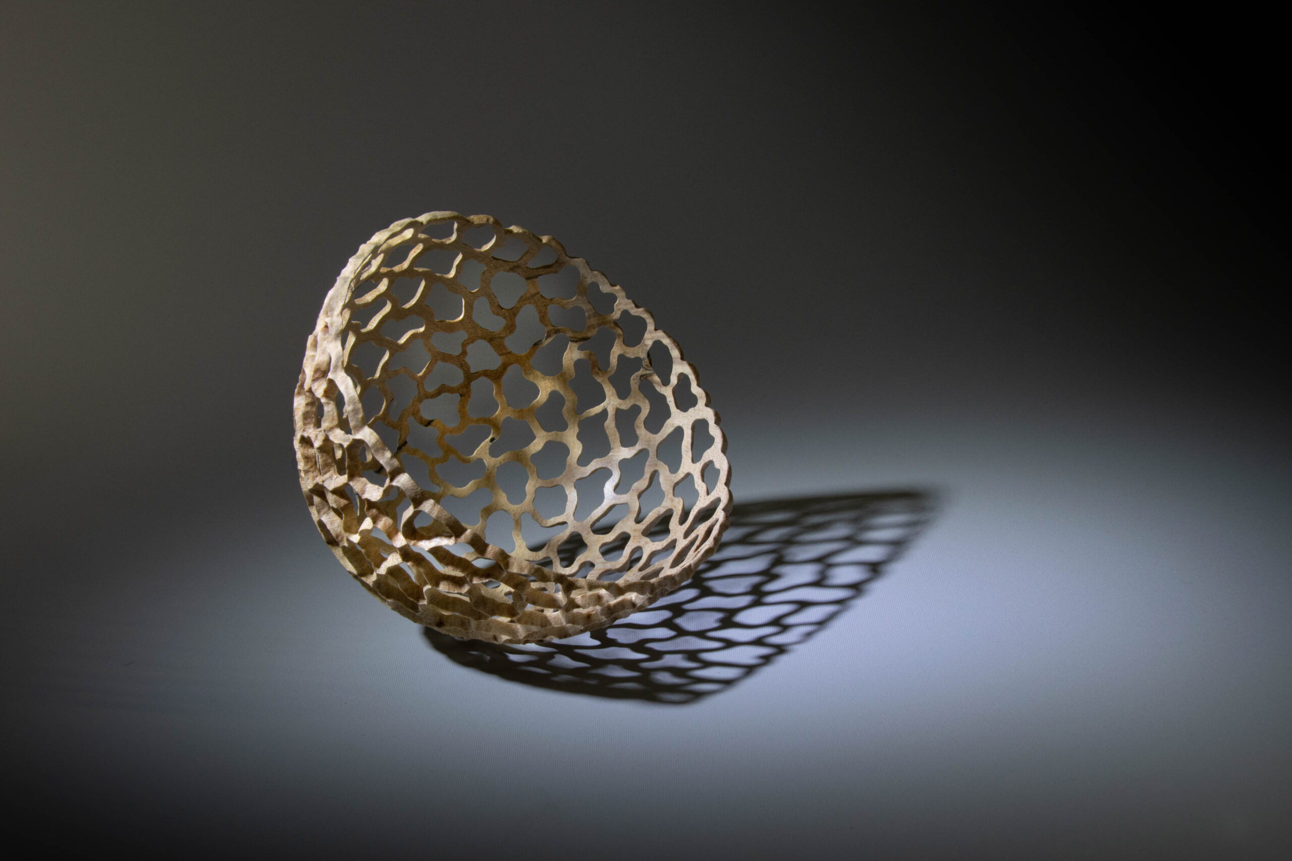 Made from English sycamore turned to 1.5mm wall thickness and pierced. 5” (125mm) diameter